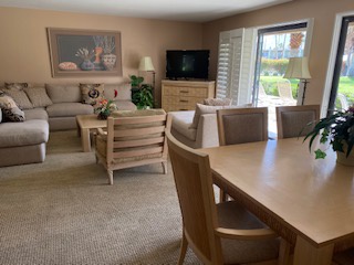 Two bedroom, two bath condo with spacious living/dining room. Fully appointed kitchen. Private patio/balcony. Shadow Mountain Resort & Club pool and tennis privileges included with this beautiful condo. Swim in the largest pool in the desert, play tennis or pickleball on 16 courts (3 clay and 2 lighted). Located in a private gated community, walking distance to El Paseo Boulevard, this condo is nicely appointed for your home away from home.
