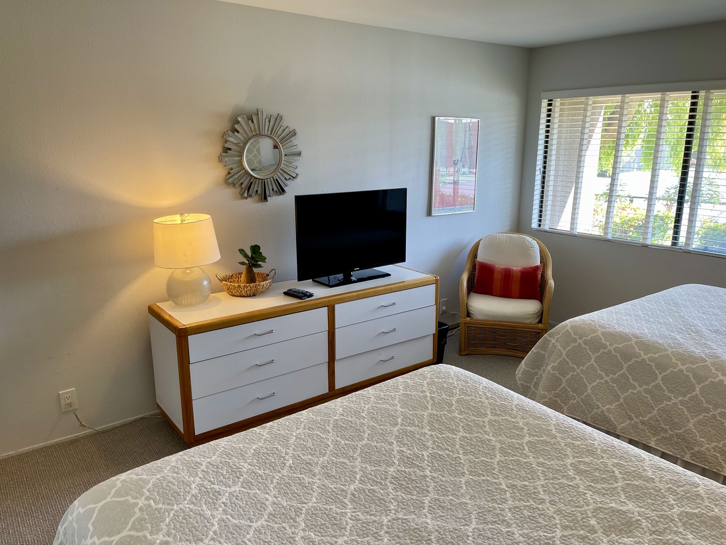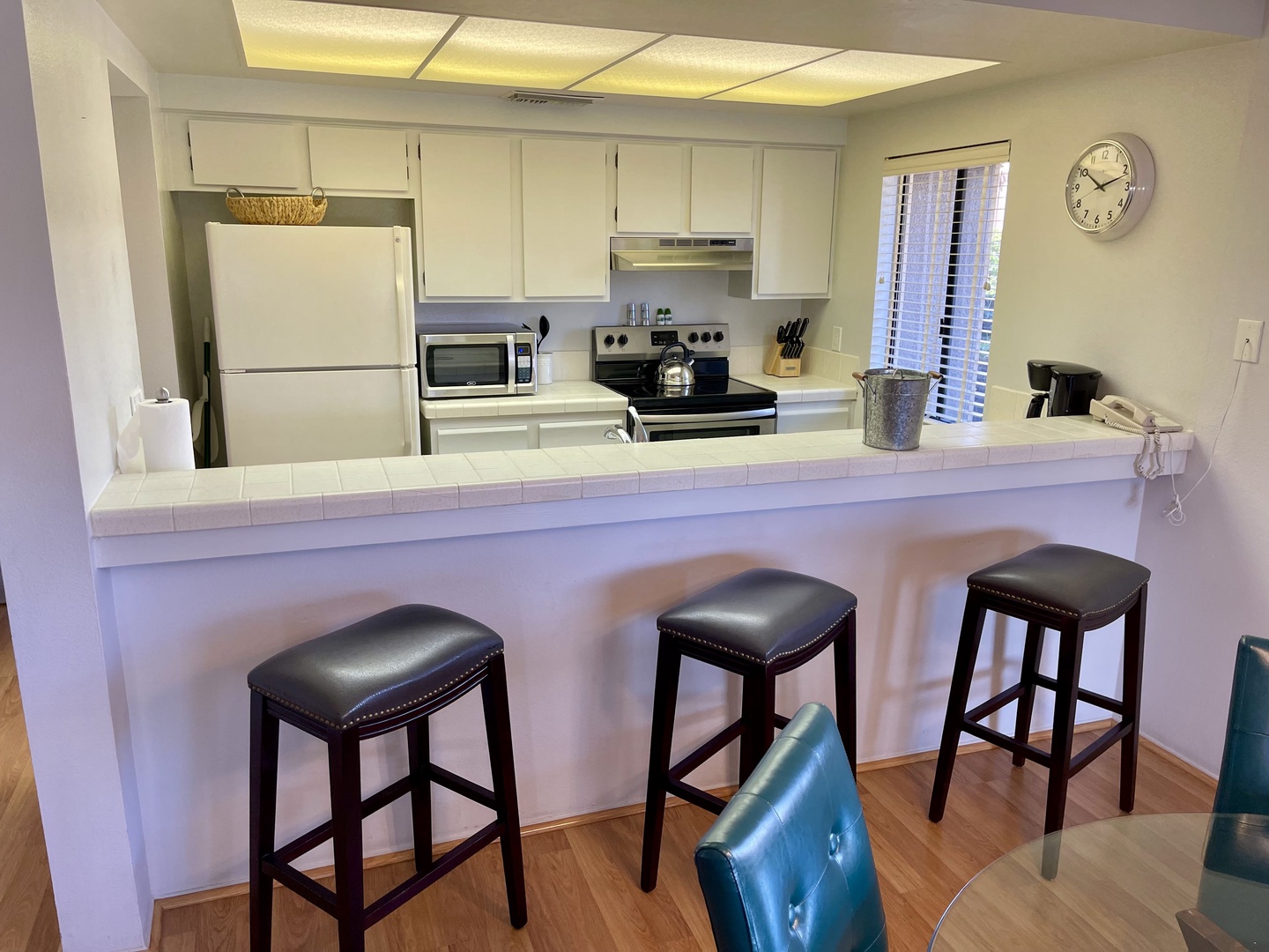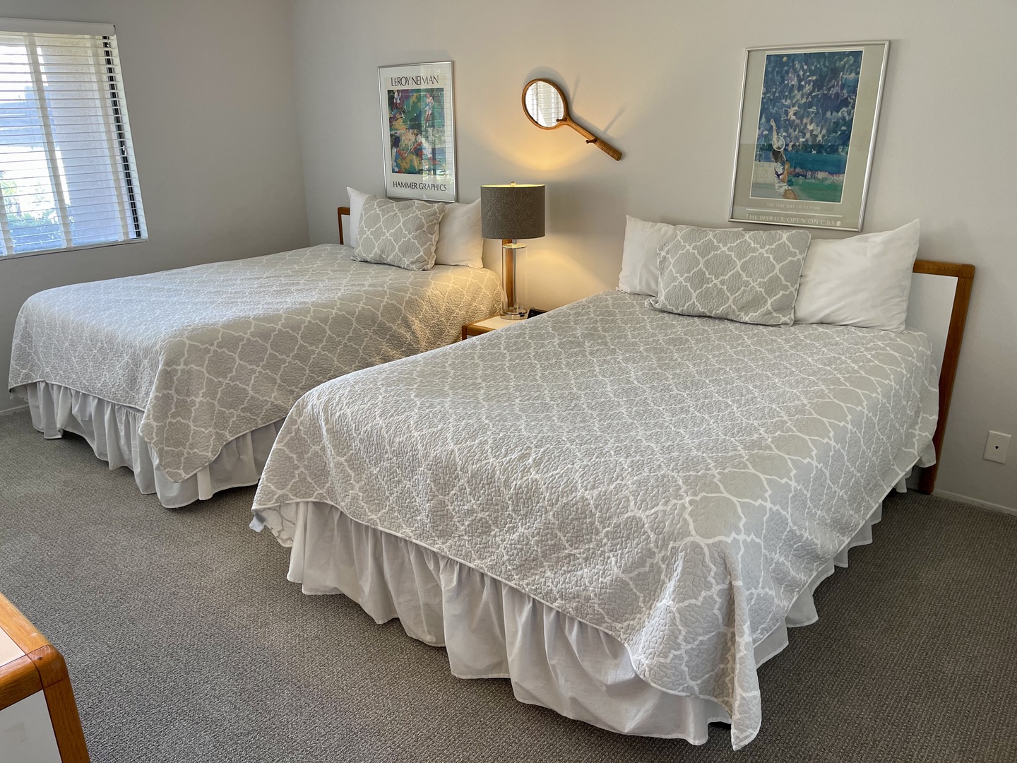 Two bedroom, two bath condo with spacious living/dining room. Fully appointed kitchen. Private patio/balcony. Shadow Mountain Resort and Club pool and tennis privileges included with this beautiful condo. Swim in the largest pool in the desert, play tennis or pickleball on 16 courts (3 clay and 2 lighted). Located in a private gated community, walking distance to El Paseo Boulevard, this condo is nicely appointed for your home away from home.